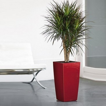 Samozavlažovací stolní květináč Lechuza Maxi Cubico Scarlet komplet s šířkou 14 cm a výškou 26 cm má lesklou červenou barvu a povrch je lakovaný. Květináč je určen pro do interiéru.