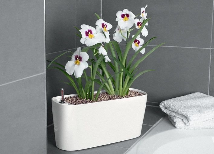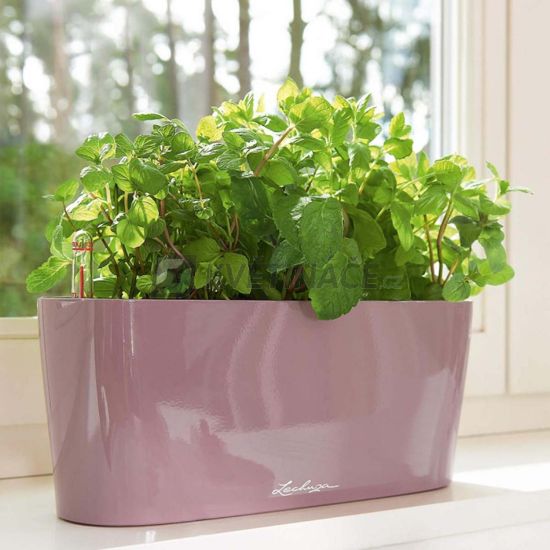 Stolní samozavlažovací květináč Lechuza Delta 20 Violet komplet tvaru truhlíku s šířkou 40 cm a výškou 18 cm má lesklou světle pastelovou fialovou barvu a povrch je z lakovaného plastu. Květináč je vhodný do interiéru. Balení obsahuje samozavlažovací systém Lechuza a ukazatele hladiny vody. Nádrž na 2 litry vody. Doporučené maximální rozměry rostliny: výška 20 cm a kořenového bal 12 cm. Květináč je vhodný pro pěstování orchidejí a letniček atd.