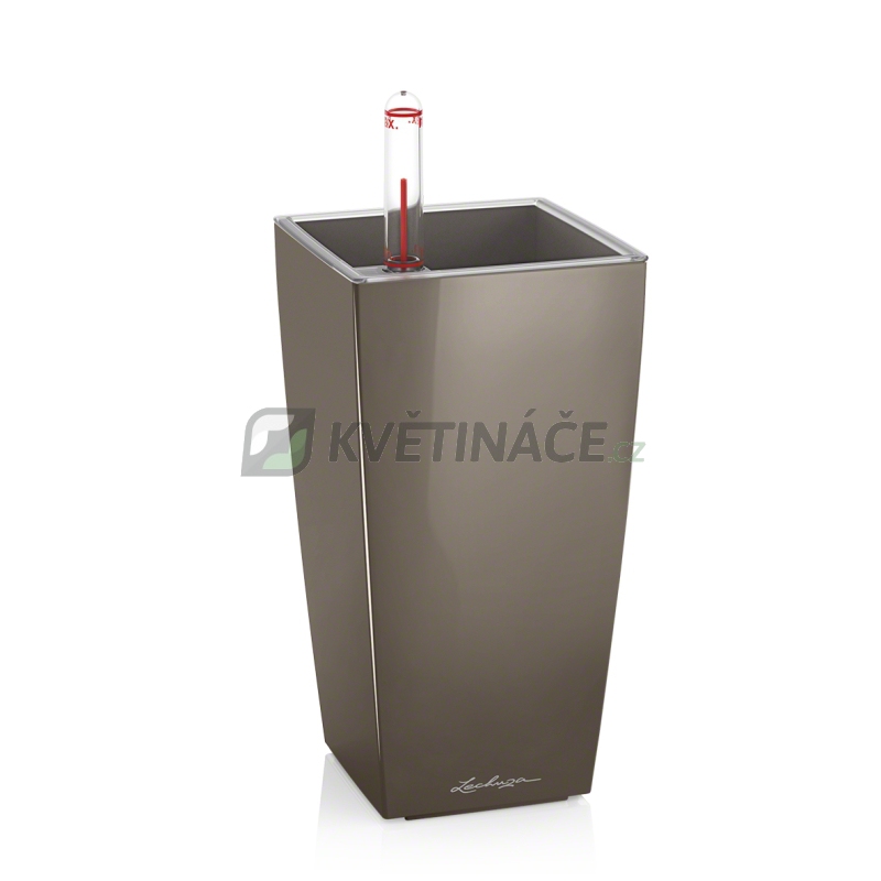 Samozavlažovací květináč Lechuza Cubico premium 22 Taupe komplet s šířkou 22 cm a výškou 41 cm má lesklou kapučíno barvu a povrch je lakovaný. Květináč je určen pro venkovní a interiérové využití.