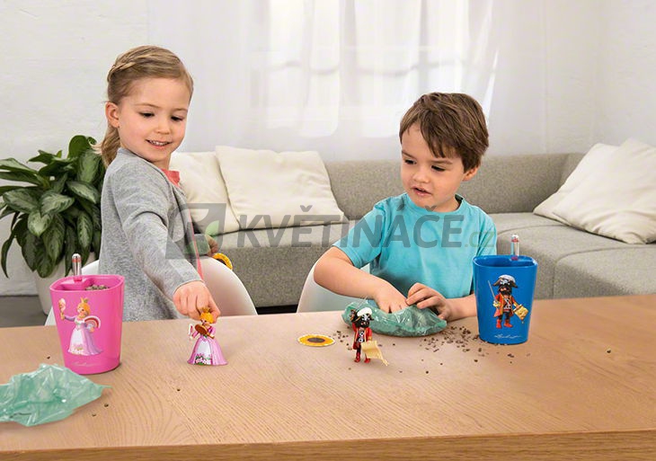 Stolní samozavlažovací květináč Lechuza Mini Deltini Star set pirát komplet s šířkou 10 cm a výškou 13 cm má lesklou modrou barvu a povrch je z lakovaného plastu. Balení obsahuje semínka slunečnice, které si děti mohou zasadit a hračku piráta na hraní. Vhodné od 4 let. Květináč je vhodný do interiéru. Balení obsahuje samozavlažovací systém Lechuza a ukazatele hladiny vody. Nádrž na 0,2 litrů vody. Doporučené maximální rozměry rostliny: výška 20 cm a kořenového balu 7 cm. Květináč je vhodný pro pěstování orchidejí a letniček atd.