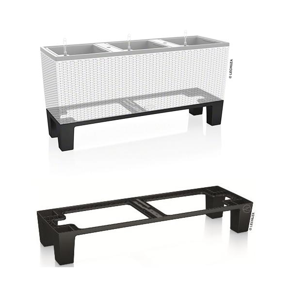 Podstavec pro Lechuza Trio Cottage a Stone 30 komplet s šířkou 100 x 30 cm a výškou 15 cm má černou matnou barvu a povrch je z probarveného plastu. Vhodný do interiéru a exteriéru. Pro květináč lze také dokoupit treláž 30 pro pěstování pnoucích rostlin jako rajská jablka, okurky, břečťan atd.