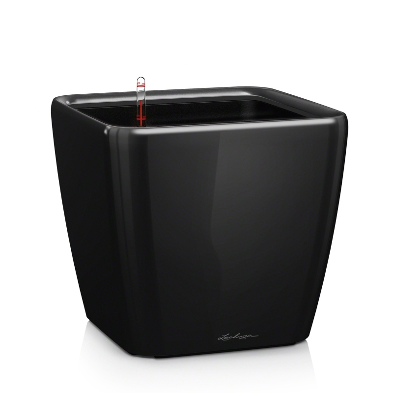 Samozavlažovací květináč Lechuza Quadro LS 28 Black komplet s šířkou 28 cm a výškou 26 cm má lesklou černou barvu a povrch je z lakovaného plastu. Květináč je vhodný do interiéru i exteriéru.