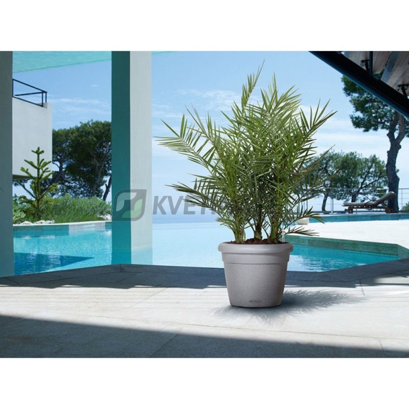 Samozavlažovací květináč Lechuza Rustico Trend Color 35 Graphite komplet s průměrem 39cm a výškou 32cm má matnou černou barvu a povrch je z probarveného plastu. Květináč je vhodný do interiéru i exteriéru. Balení obsahuje samozavlažovací systém Lechuza včetně ukazatele hladiny vody. Nádrž na vodu 3,7 litrů a výpustný ventil pro odtok přebytečné dešťové vody. Díky tomuto systému již nehrozí přelití květiny i při intenzivním dešti. Doporučené maximální rozměry rostliny: výška 90 cm a výška kořenového balu 22,5 cm.