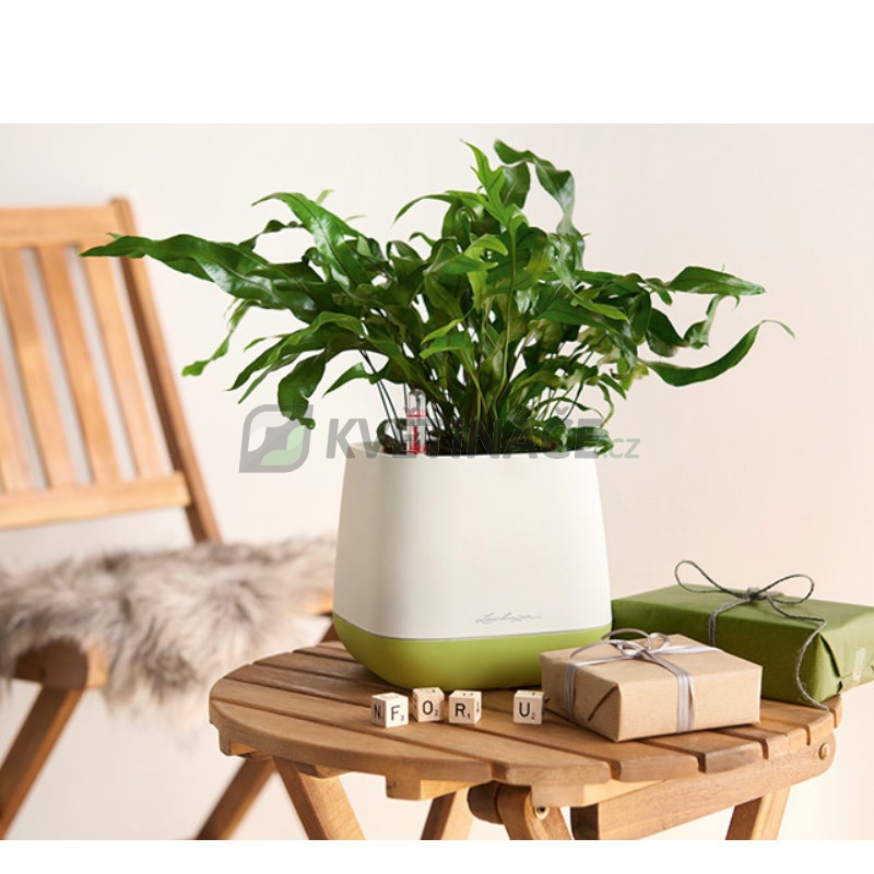 Samozavlažovací květináč Lechuza Yula Trend Color bílo-zelený komplet s průměrem 17 cm a výškou 15 cm má hladkou polo-lesklou barvu. Květináč je vyroben z probarveného plastu. Květináč Yula Trend je vhodný do interiéru na pěstování malých rostlin jakou jsou bylinky, kaktusy a drobné rostliny v původním pěstebním květináči o průměru 12cm. Balení obsahuje samozavlažovací systém Lechuza, v kterém je ukazatel hladiny vody. Dále druhé dno pro nádrž vody na 0,5 litrů. Doporučené maximální výška rostliny 20cm.