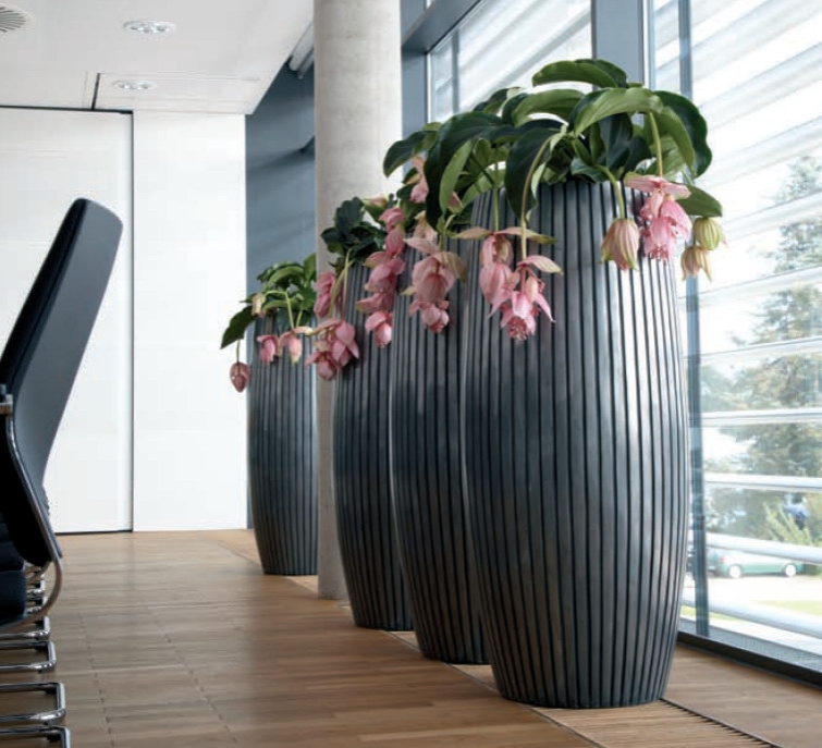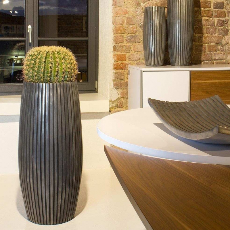 Luxusní květináč Lines s průměrem 42cm a výškou 90cm má vysoký kulatý tvar. Konstrukce květináčů je vyrobena z kvalitního pevného kompozitního materiálu. Povrch je lakovaný z hliníkového prášku. Květináč je ručně vyrobený a to zaručuje originál každého kusu. Květináč je vhodný do interiéru. Pro osázení živou květinou je nutné zakoupit gumovou vložku, do které se zasadí rostlina. Doporučujeme také zakoupit vodoznak, díky kterému budete mít přehled o stavu hladiny vody v květináči.