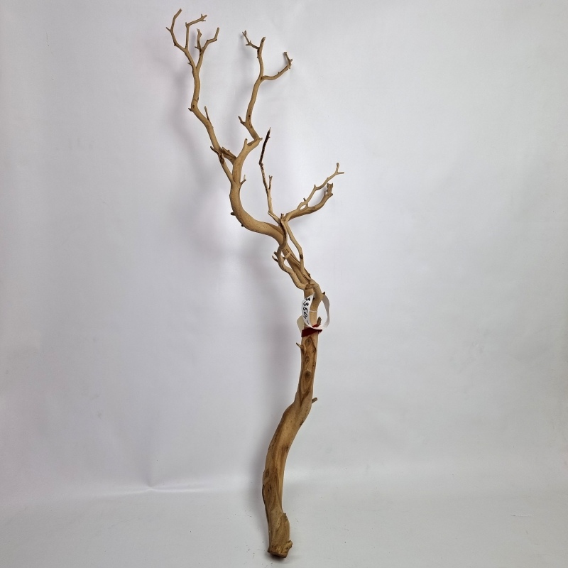 Dekorativní dřevěná větev Manzanita sandblasted DE s výškou 90 cm. Její povrch je upraven pro odolnost a stálost. Fotka konkrétního kusu, který máme skladem.