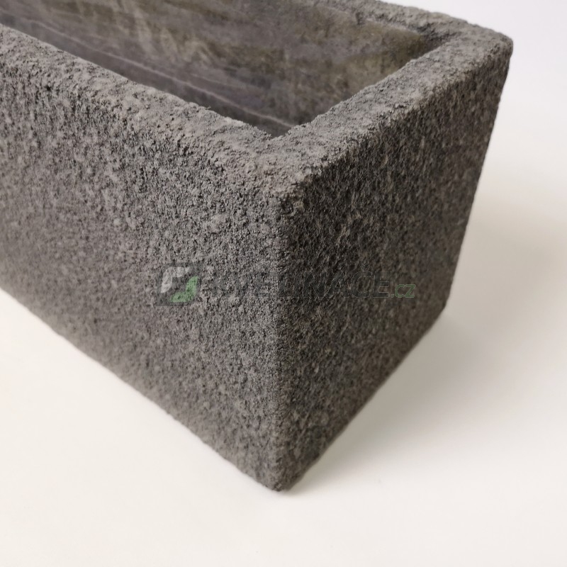 Venkovní truhlík Marc antracit s rozměry 56x17x17cm má matnou barvu a hrubý povrch. Je odolný UV záření. Vyrobený z odlehčeného betonu, který odolává mrazům a povětrnostním podmínkám. Truhlík lze využít v interiéru při zakoupení folie do květináčů.