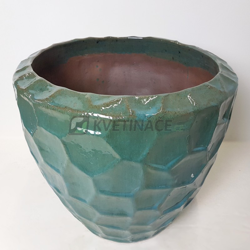 Keramický květináč Moda Couple Relief Tahiti s průměrem 55 cm a výškou 50 cm má tyrkysovou lesklou glazuru. Vhodný do interiéru a exteriéru. Květináč má vyvrtanou díru a není vodotěsný. Doporučujeme zakoupit gumovou vložku nebo folii pro osázení živou rostlinou v interiéru.