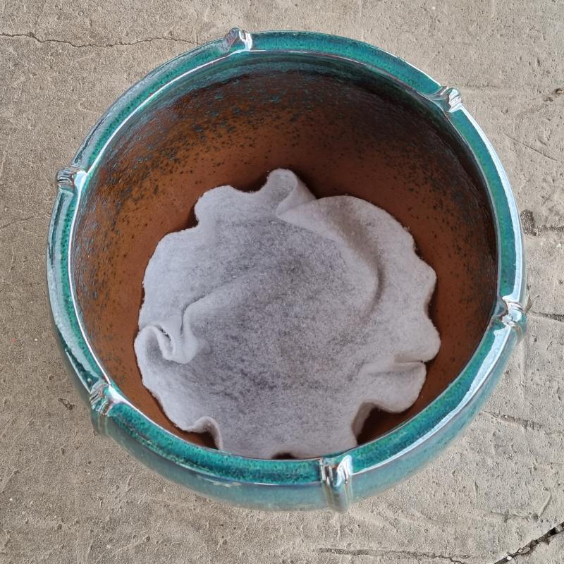 Drobná nedokonalost glazury není vadou, ale předností těchto keramických květináčů a nelze ji reklamovat. Na květináče je nutné pohlížet jako na jedinečné umělecké dílo. (steklá glazura, nedolitá glazura, drobné pukliny a narušení)