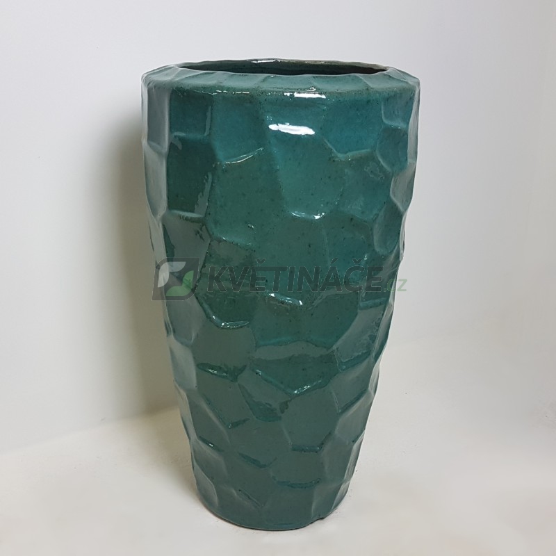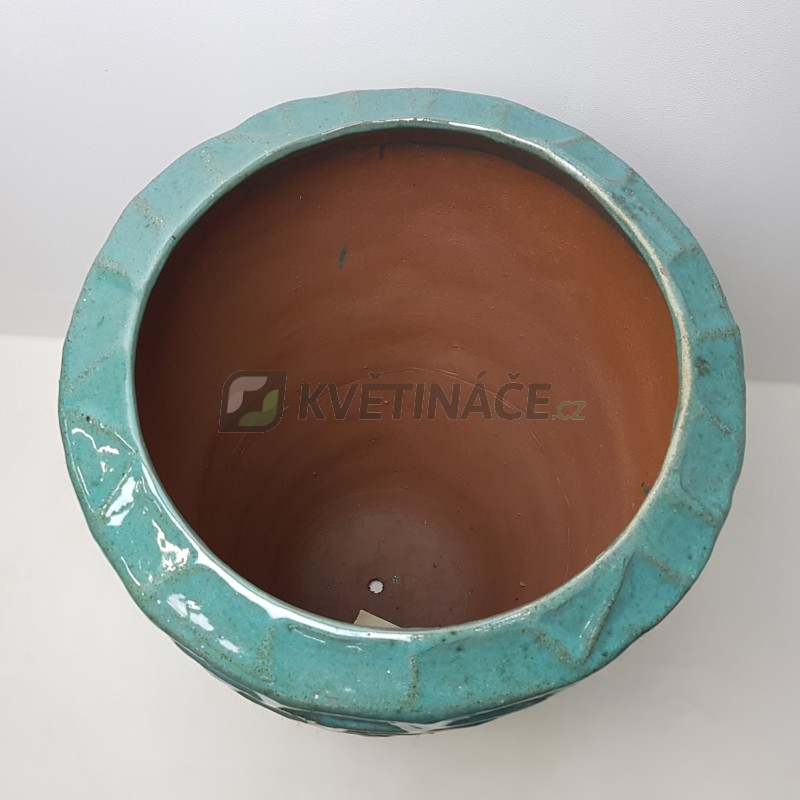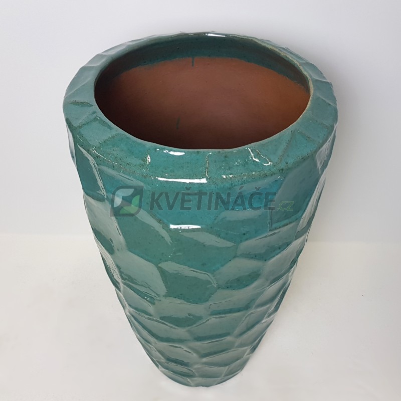 Keramický květináč Moda Partner Relief Tahiti s průměrem 43 cm a výškou 75 cm má tyrkysovou lesklou glazuru. Vhodný do interiéru a exteriéru. Květináč má vyvrtanou díru a není vodotěsný. Doporučujeme zakoupit gumovou vložku nebo folii pro osázení živou rostlinou v interiéru.