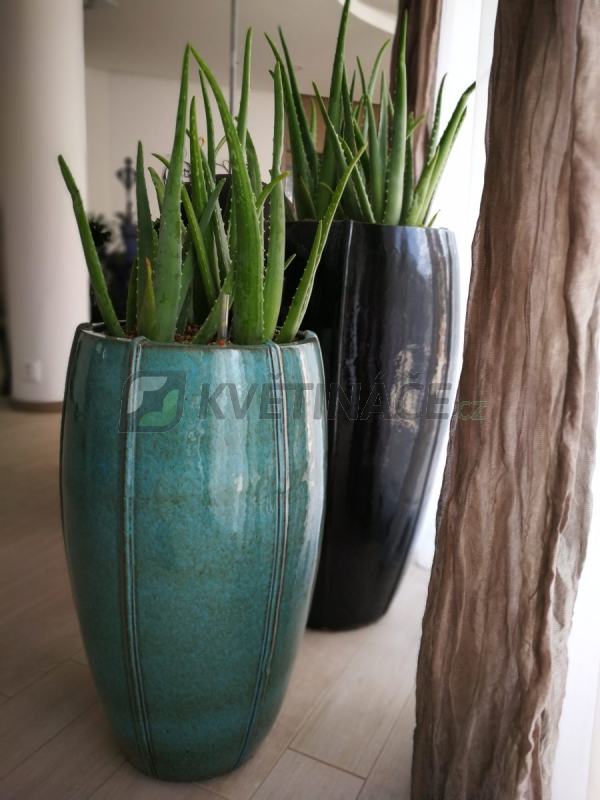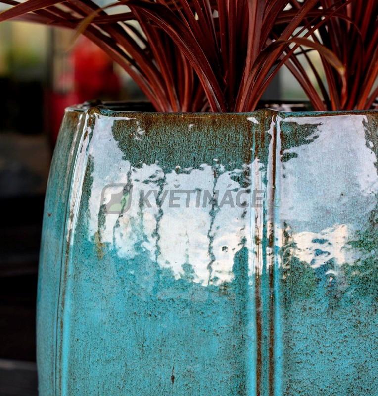 Keramický květináč Moda Vase Tahiti s průměrem 53 cm a výškou 92 cm má tyrkysovou lesklou glazuru. Vhodný do interiéru a exteriéru. Květináč má vyvrtanou díru a není vodotěsný. Doporučujeme zakoupit gumovou vložku nebo folii pro osázení živou rostlinou v interiéru.