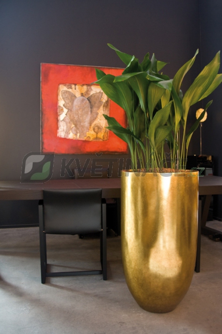 Luxusní květináč Pandora Gold Leaf s průměrem 50 cm a výškou 125 cm má kulatý vysoký tvar. Konstrukce květináčů je vyrobena z kvalitního pevného kompozitního materiálu. Povrch má zlatou barvu. Květináč je ručně vyrobený a to zaručuje originál každého kusu. Květináč je vhodný do interiéru. Doporučujeme zakoupit vodoznak, díky kterému budete mít přehled o stavu hladiny vody v květináči.