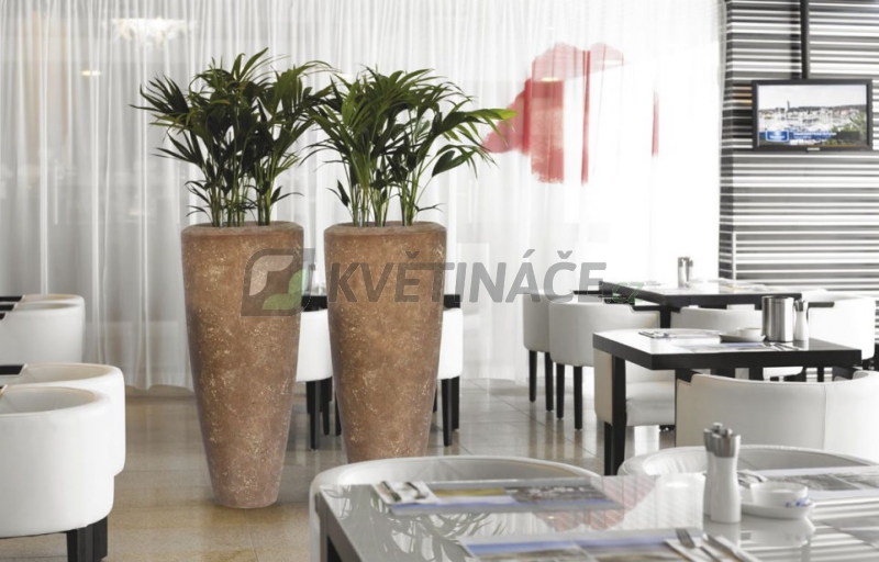 Luxusní květináč Polystone Rock Plain Partner průměrem 37cm a výškou 90cm je vyrobený z kvalitního kompozitního materiálu polyston, který je lehký, pevný a je vysoce odolný. Povrch imituje kámen. Květináč je určeny do interiéru. Pro zaručení 100% nepropustnosti vody je nutné zakoupit gumovou vložku, do které se zasadí květiny. Díky vodoznaku budete mít přehled o hladině vody v květináči. Vodoznak lze jednoduše upravit na požadovanou výšku. Květináč vám připravíme s gumovou vložkou a vodoznakem pro jednoduché vysazení květiny.