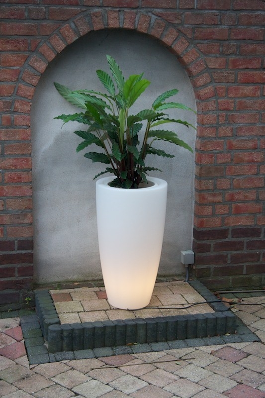 Svítící květináč Pure Straight Round High Light LED s průměrem 50cm a výškou 103cm je vyrobený z kvalitního průhledného plastu, který je lehký, pevný a je vysoce odolný. Povrch je hladký a má mléčnou matnou barvu. Květináč je určeny do interiéru i exteriéru. Květináč je nutné zapojit do elektrické sítě 230V. Krytím IP 63 je chráněno před vniknutím pevných cizích těles a před dotykem elektrického drátu a před kropením a dešťovou vodou.