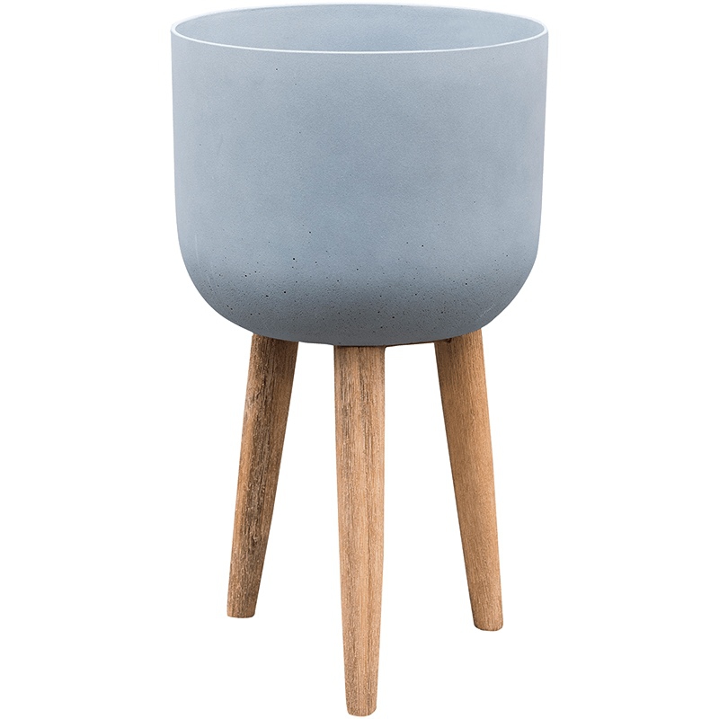Luxusní interiérový retro květináč blue s rozměry 36 x 63 cm má světle modrošedou matnou barvu. Květináč je vyrobený z kompozitního vodotěsného materiálu. Tím je dosažena nízká hmotnost a vysoká pevnost a stálost tvaru. Květináč Retro má lakovaný povrch s matnou barvou. Podpůrné nohy jsou vyrobeny z pravého dřeva.