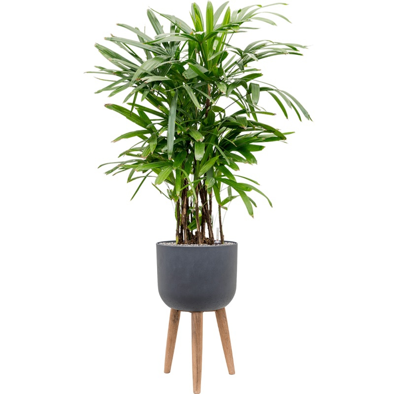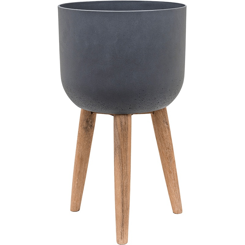 Luxusní interiérový retro květináč dark grey s rozměry 36 x 63 cm má tmavě šedou barvu. Květináč je vyrobený z kompozitního vodotěsného materiálu. Tím je dosažena nízká hmotnost a vysoká pevnost a stálost tvaru. Květináč Retro má lakovaný povrch s matnou barvou. Podpůrné nohy jsou vyrobeny z pravého dřeva.