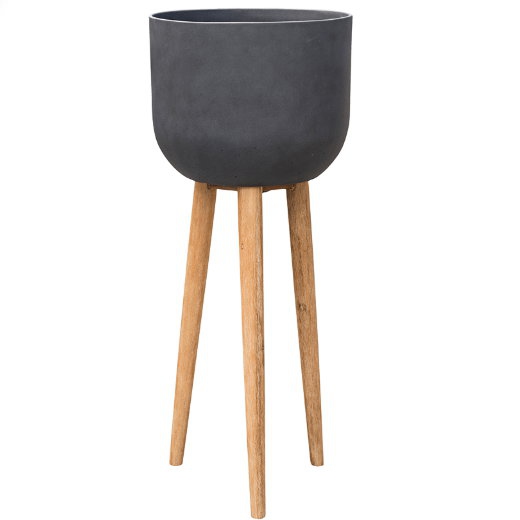 Luxusní interiérový retro květináč dark grey s rozměry 40 x 97 cm má tmavě šedou barvu. Květináč je vyrobený z kompozitního vodotěsného materiálu. Tím je dosažena nízká hmotnost a vysoká pevnost a stálost tvaru. Květináč Retro má lakovaný povrch s matnou barvou. Podpůrné nohy jsou vyrobeny z pravého dřeva.