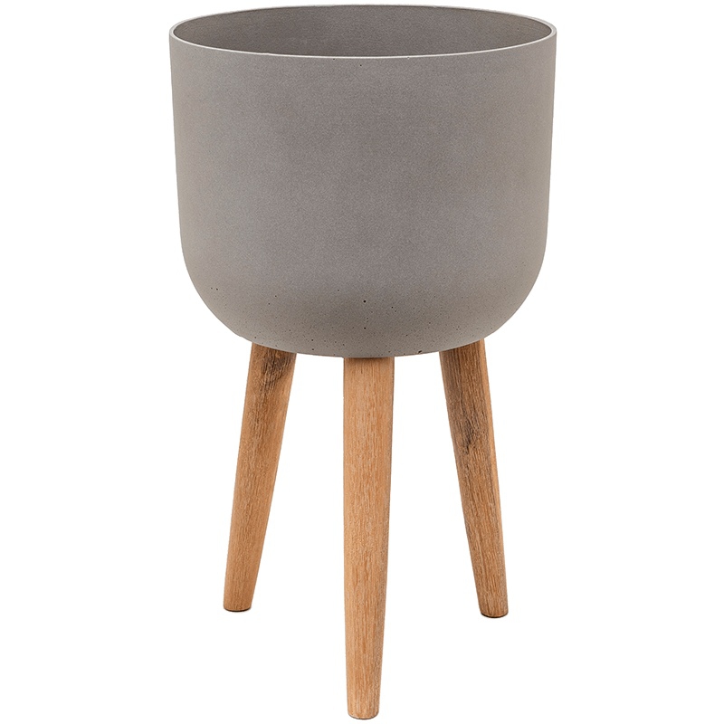 Luxusní interiérový retro květináč grey s rozměry 36 x 63 cm má šedou matnou barvu. Květináč je vyrobený z kompozitního vodotěsného materiálu. Tím je dosažena nízká hmotnost a vysoká pevnost a stálost tvaru. Květináč Retro má lakovaný povrch s matnou barvou. Podpůrné nohy jsou vyrobeny z pravého dřeva.