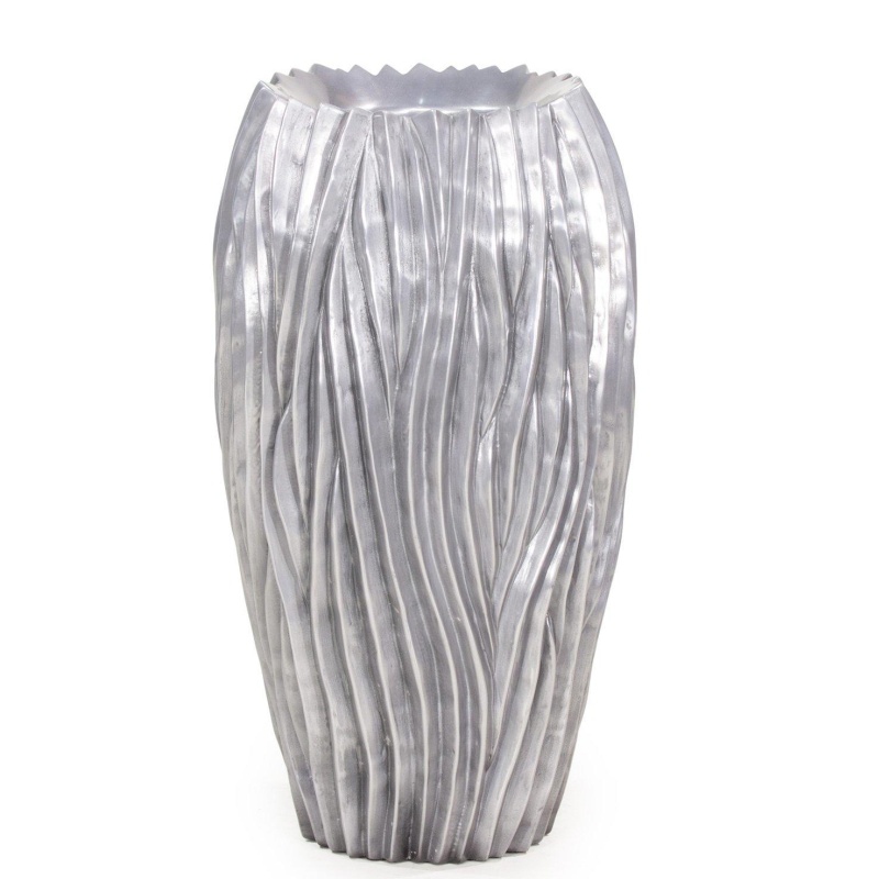 Luxusní vysoký květináč River Vase aluminium s průměrem 39 a výškou 70cm je vhodný do interiéru. Konstrukce je vyrobena z kompozitního materiálu a povrch je lakován polo-matným hliníkovým práškem. Ruční výroba zaručuje jedinečnost každého kusu květináče. Pro osázení živou rostlinou je nutné zakoupit gumovou vložku. Doporučujeme zakoupit i vodoznak pro přehled stavu vody v květináči.