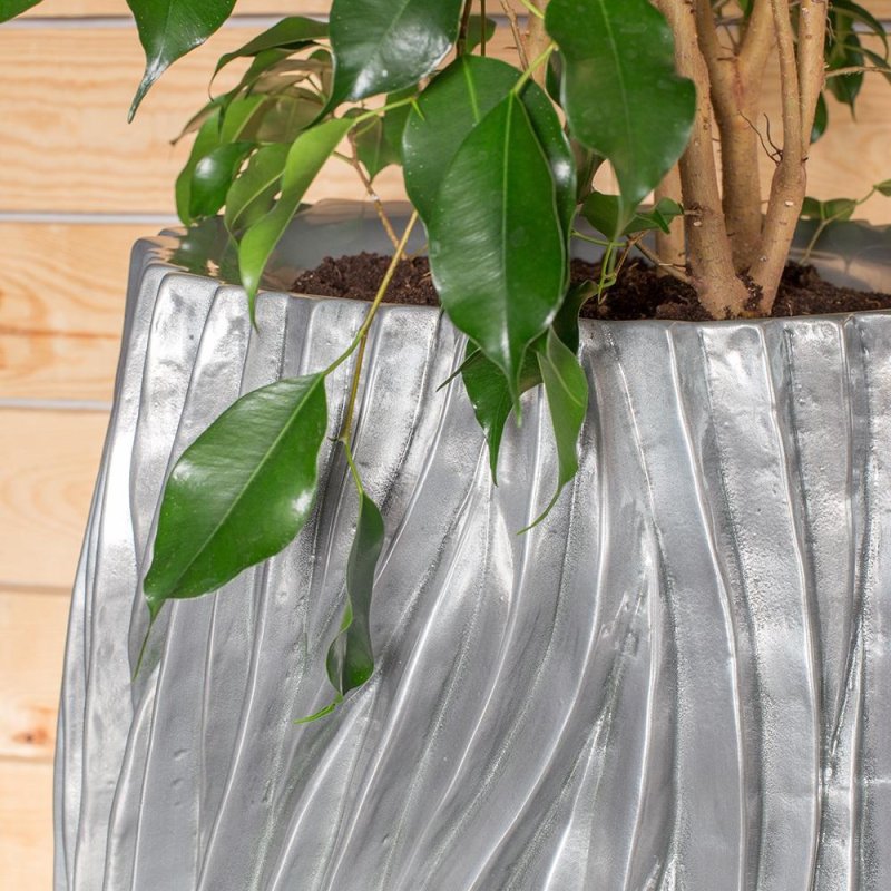 Luxusní květináč River Bowl Aluminium s průměrem 80 a výškou 60cm je vhodný do interiéru. Konstrukce je vyrobena z kompozitního materiálu a povrch je lakován polomatným hliníkovým práškem.