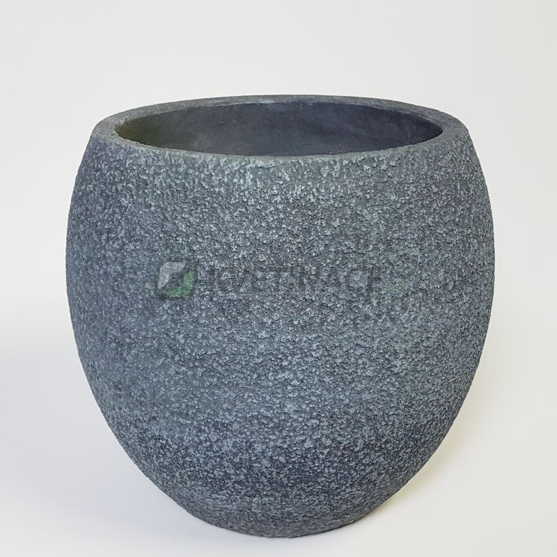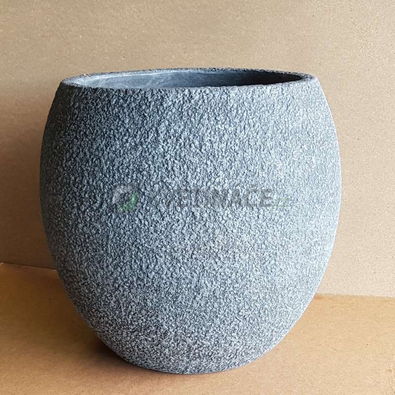 Venkovní květináč Sebas šedý ve tvaru koule s rozměry 37x34cm má matnou barvu a hrubý povrch. Materiál je odolný UV záření. Vyrobený z odlehčeného betonu, který odolává mrazům a povětrnostním podmínkám. Květináč lze využít v interiéru při zakoupení folie nebo vložky do květináčů.