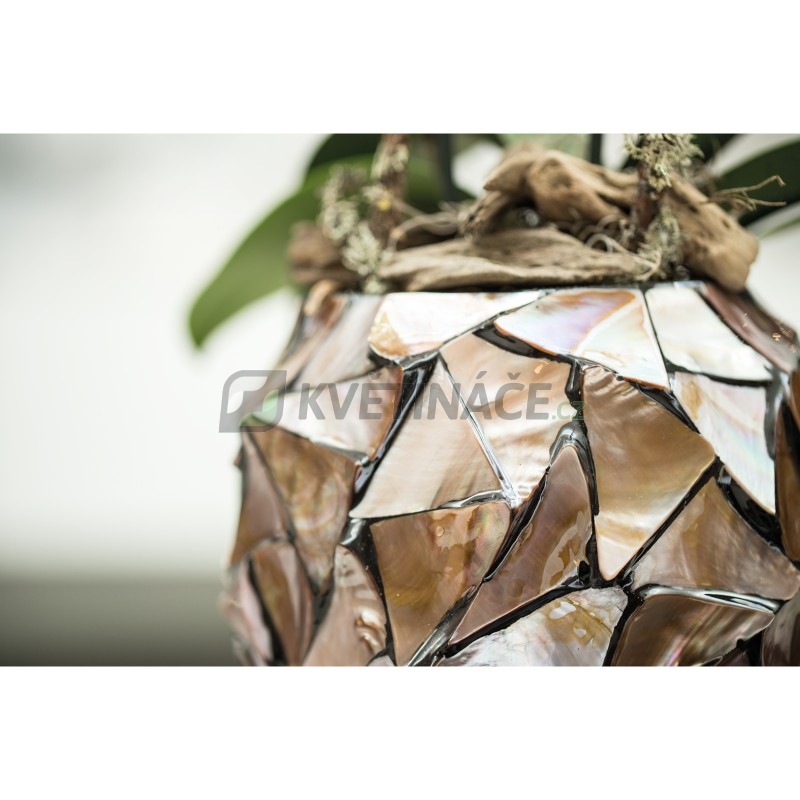 Luxusní mísa Shell Brown Bowl s průměrem 40 cm a výškou 24 cm má kulatý tvar. Konstrukce květináčů je vyrobena z kvalitního pevného kompozitního materiálu. Povrch je vykládaný pravou hnědou perletí. Květináč je ručně vyrobený a to zaručuje originál každého kusu. Vhodný do interiéru.