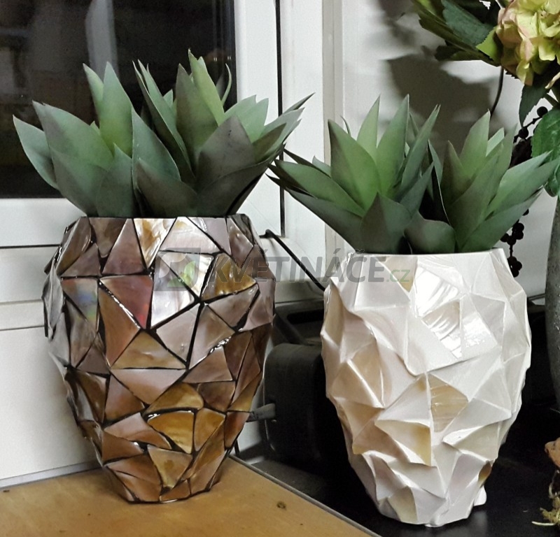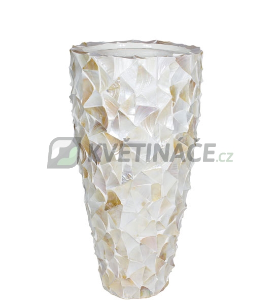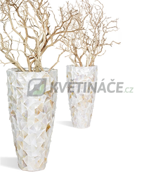 Luxusní stolní květináč Shell White na orchideje s průměrem 17cm a výškou 24cm má kulatý vysoký tvar. Konstrukce květináčů je vyrobena z kvalitního pevného kompozitního materiálu. Povrch je vykládaný pravou bílou perletí. Květináč je ručně vyrobený a to zaručuje originál každého kusu. Vhodný do interiéru na stůl na orchideje.