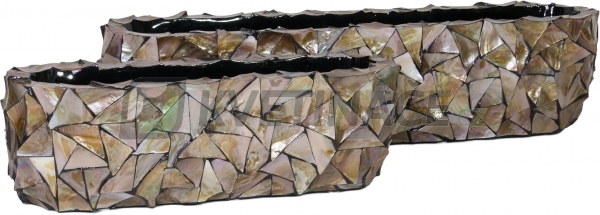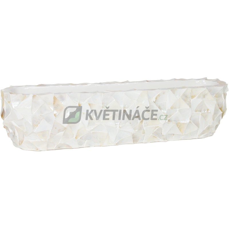 Luxusní ovál Shell White oval s rozměry 90x20 cm a výškou 20 cm má oválný tvar. Konstrukce květináčů je vyrobena z kvalitního pevného kompozitního materiálu. Povrch je vykládaný světlou perletí. Květináč je ručně vyrobený a to zaručuje originál každého kusu. Vhodný do interiéru.