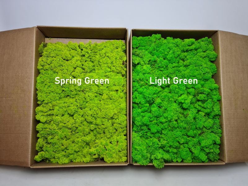 Stabilizovaný Norský mech Green na plochu cca: 0,5 m2 má tmavě zelenou barvu. Někdy je nazýván taky jako Sobí mech. Je vlhčený a namořený v tekutině glycerol bez zápachu, který je zdravotně nezávadný.