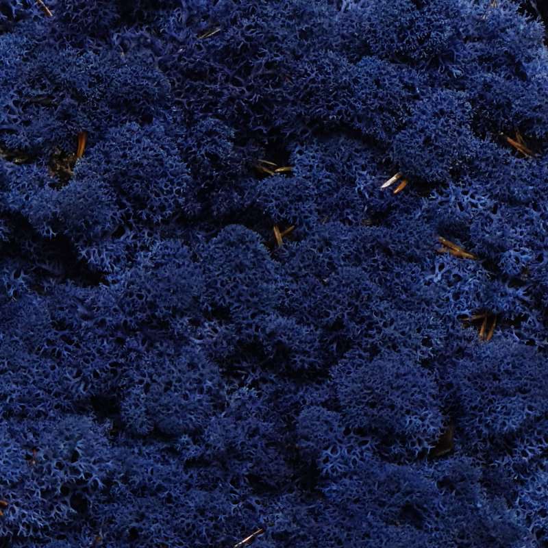 Stabilizovaný Norský sobí mech Classic Blue 500 g má tmavě modrou barvu. Instalace na svislé stěny se aplikuje speciálním lepidlem na mechy nebo jednodušším způsobem lze přichytit sponkovací pistolí do dřevo či tavící pistolí. Mech je bezúdržbový. Sobí mech může přijít do kontaktu s vodou, ale nesvědčí mu přímé sluneční záření. Doporučujeme mech udržovat v relativní vlhkosti vzduchu okolo 45 - 65 %, aby se mech nevysušil a ponechal si svoji barvu a měkkost. Balení na plochu minimálně cca. 25 x 25 cm.