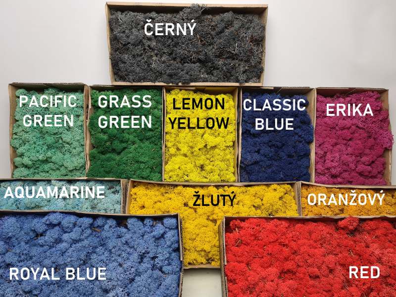 Stabilizovaný Norský mech Spring Green na plochu cca: 0,5 m2 má žluto zelenou barvu. Někdy je nazýván taky jako Sobí mech. Je vlhčený a namořený v tekutině glycerol bez zápachu, který je zdravotně nezávadný.