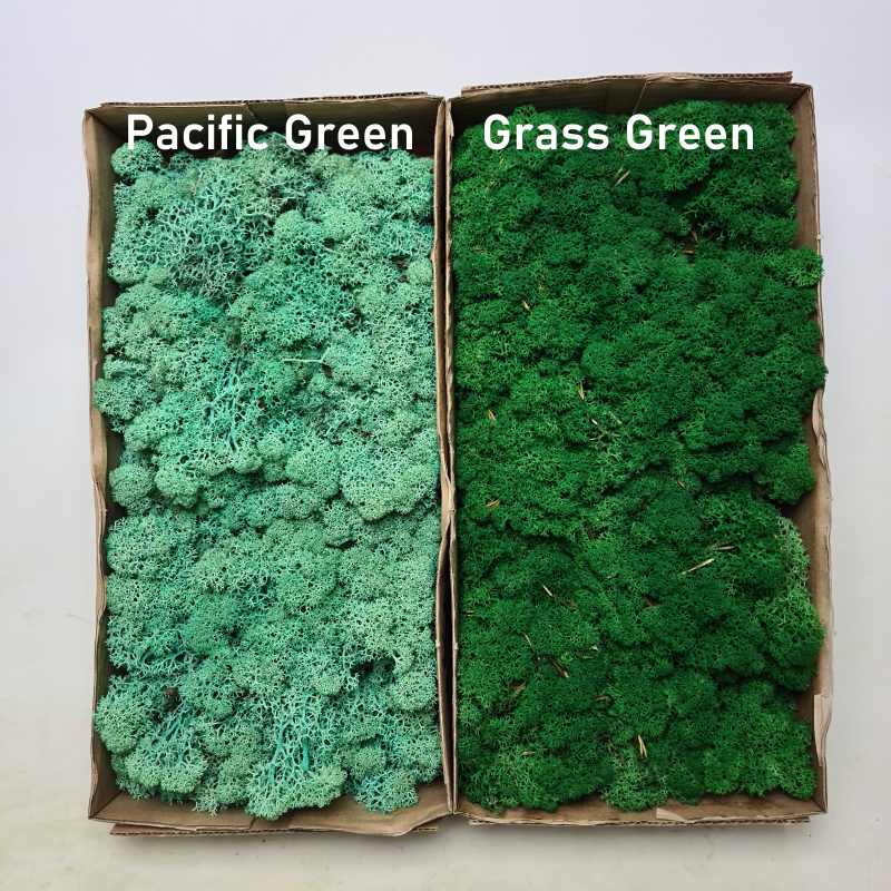 Stabilizovaný Norský sobí mech Pacific Green 500 g má zelenou barvu. Instalace na svislé stěny se aplikuje speciálním lepidlem na mechy nebo jednodušším způsobem lze přichytit sponkovací pistolí do dřevo. Je bezúdržbový. Sobí mech může přijít do kontaktu s vodou, ale nesvědčí mu přímé sluneční záření. Doporučujeme mech udržovat v relativní vlhkosti vzduchu okolo 45 - 65 %, aby se mech nevysušil a ponechal si svoji barvu a měkkost. Balení minimálně na plochu cca. 25 x 25 cm.