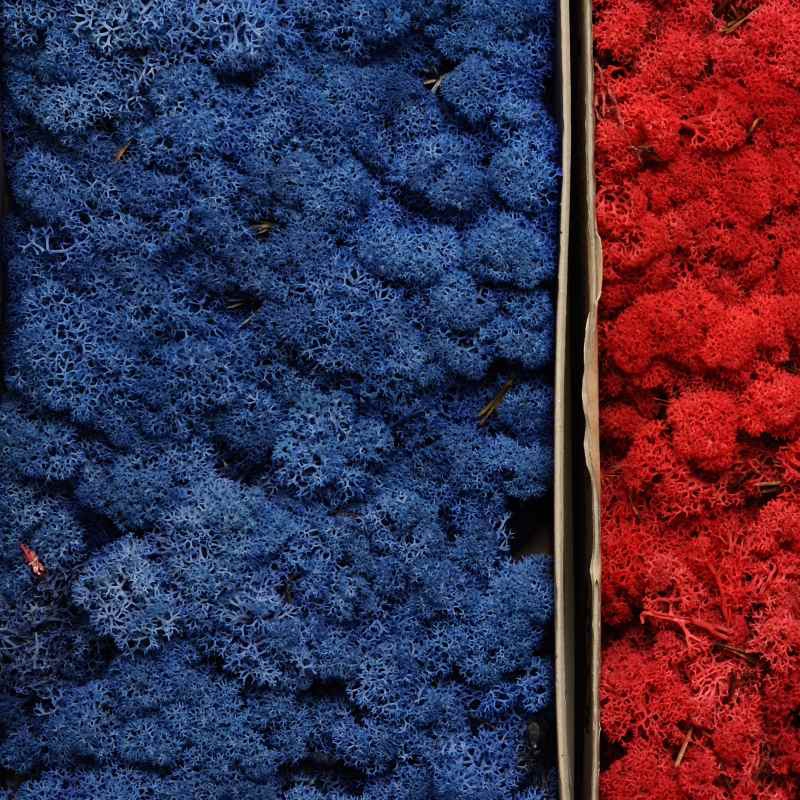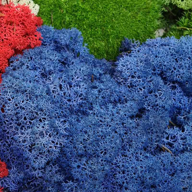 Stabilizovaný Norský sobí mech Royal Blue 500 g má modrou barvu. Instalace na svislé stěny se aplikuje speciálním lepidlem na mechy nebo jednodušším způsobem lze přichytit sponkovací pistolí do dřevo či tavící pistolí. Mech je bezúdržbový. Sobí mech může přijít do kontaktu s vodou, ale nesvědčí mu přímé sluneční záření. Doporučujeme mech udržovat v relativní vlhkosti vzduchu okolo 45 - 65 %, aby se mech nevysušil a ponechal si svoji barvu a měkkost. Balení minimálně na plochu cca. 25 x 25 cm.