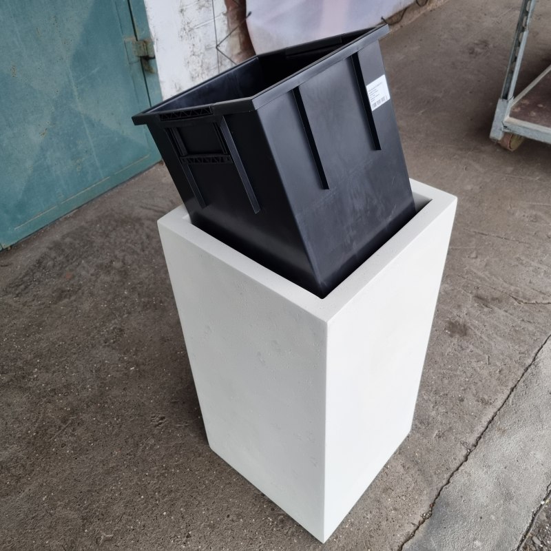Venkovní květináč Square s rozměry 60x60x60cm má šedou matnou barvu a je odolný UV záření. Ručně vyrobený z kompozitního materiálu, který odolává mrazům a povětrnostním podmínkám. Při použití v interiéru je nutné zakoupit gumovou vložku, do které se zasadí rostlina. Vložka zaručí 100% nepropustnost vody a lze s ní vytvořit samozavlažovací systém.