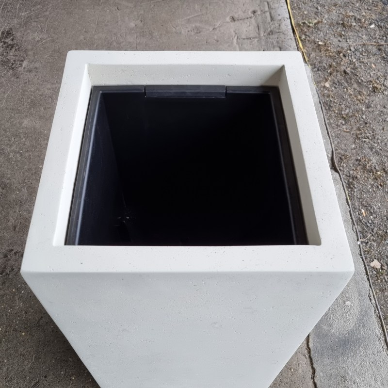 Venkovní květináč Square s rozměry 60x60x60cm má šedou matnou barvu a je odolný UV záření. Ručně vyrobený z kompozitního materiálu, který odolává mrazům a povětrnostním podmínkám. Při použití v interiéru je nutné zakoupit gumovou vložku, do které se zasadí rostlina. Vložka zaručí 100% nepropustnost vody a lze s ní vytvořit samozavlažovací systém.