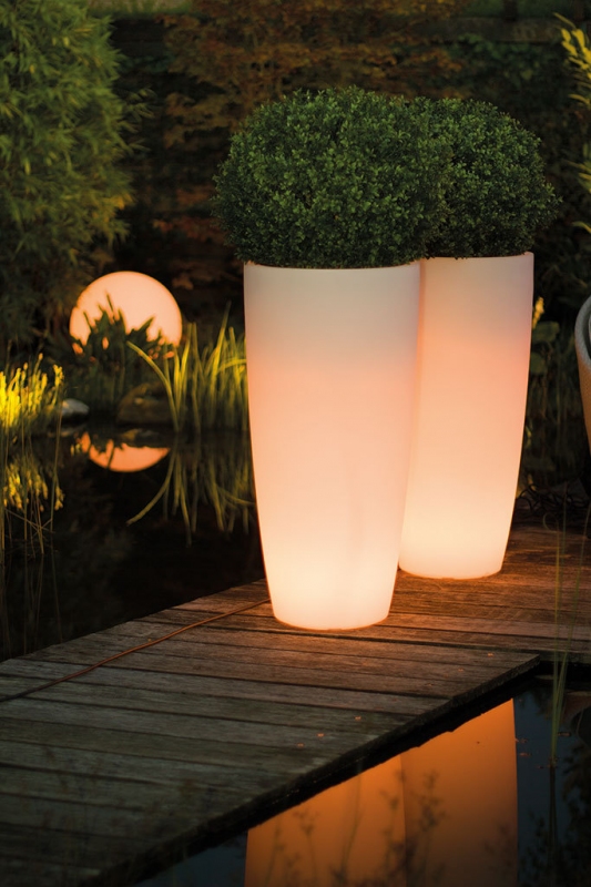 Svítící květináč Lumenio Square s šířkou 40x40cm a výškou 57cm je vyrobený z kvalitního průhledného plastu, který je lehký, pevný a je vysoce odolný. Povrch je hladký a má mléčnou matnou barvu. Květináč je určeny do interiéru i exteriéru. Květináč je nutné zapojit do elektrické sítě 230V. Součástí balení je ovladač s kterým lze vypnout/zapnou a ovládat barvy květináče. Možnost jedné navolené barvy nebo pozvolna se měnících 15 barev. Krytím IP 44 je chráněno před vniknutím pevných cizích těles o průměru 1 mm a větších, před dotykem elektrického drátu a před stříkající vodou.