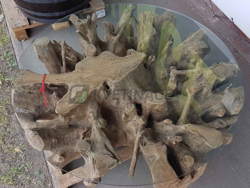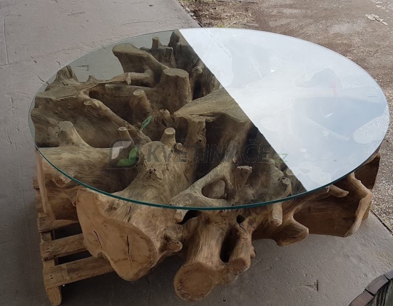 Teakový kulatý stůl s průměrem 120x40cm vč. skleněné desky. Každý kus je originál a nelze dodat 2 naprosto stejné kusy. Fotka konkrétního kusu.