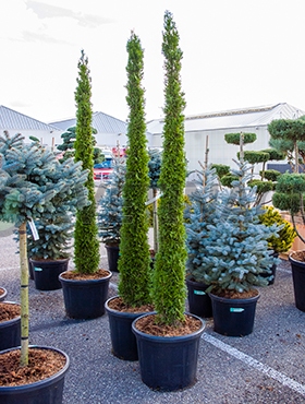 Thuja smaragd toscane s průměrem květináče 55cm a výškou 270cm včetně balu.