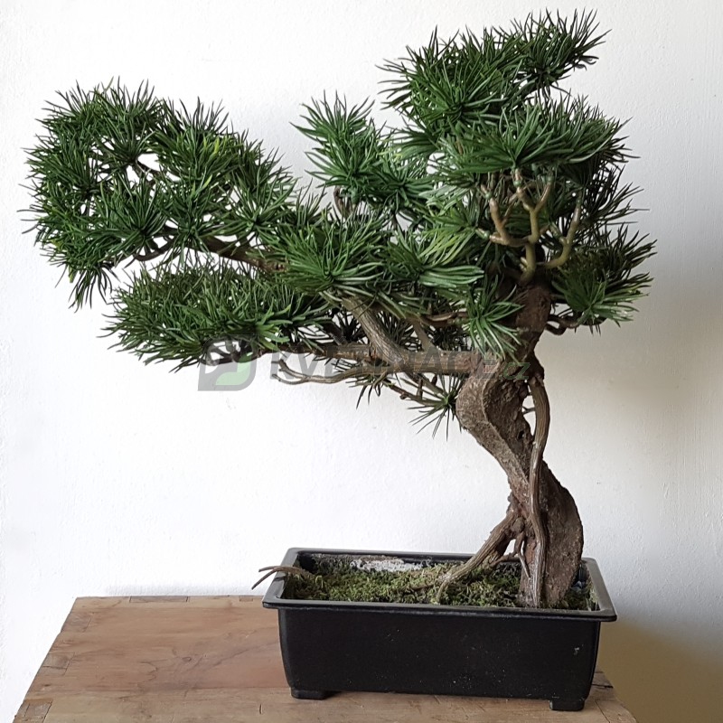 Umělá bonsaj Podocarpus dokonalého vzhledu s výškou 80 cm včetně květináče. Určeno do místností, kde není možné pěstovat živé bonsaje. Vyrobeno z kvalitního PVC.