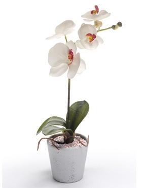 Phalaenopsis Bush je umělá bílá orchidej s výškou 55 cm je vhodná do tmavých místností nebo pro často cestující, kteří nemají čas se starat o živé rostliny. Vypadá velice věrohodně.