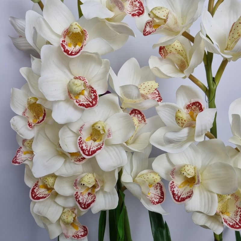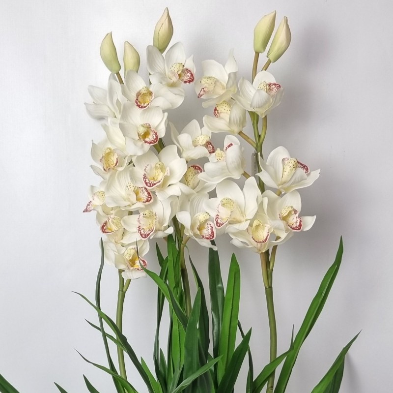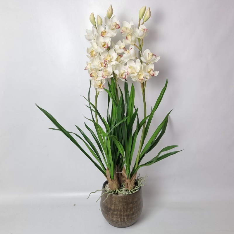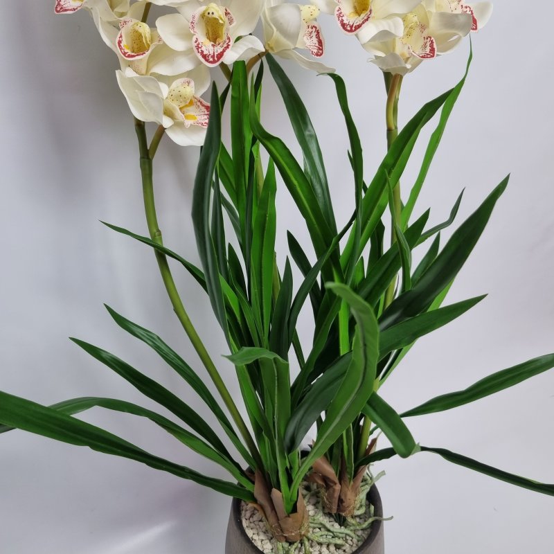 Cymbidium Creme 90 cm je umělá bílá orchidej vč. zelených listů s výškou 90 cm. Vypadá velice věrohodně. Cena za jeden kus bez květináče. Na hlavním obrázku jsou vyfocené 3 kusy v květináči.