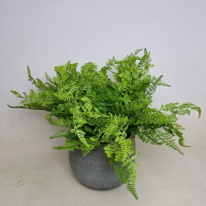 Umělé kapradí které lze zavěsit s výškou 45 cm je vhodný do tmavých místností nebo pro často cestující, kteří nemají čas se starat o živé rostliny. Vypadá velice věrohodně.