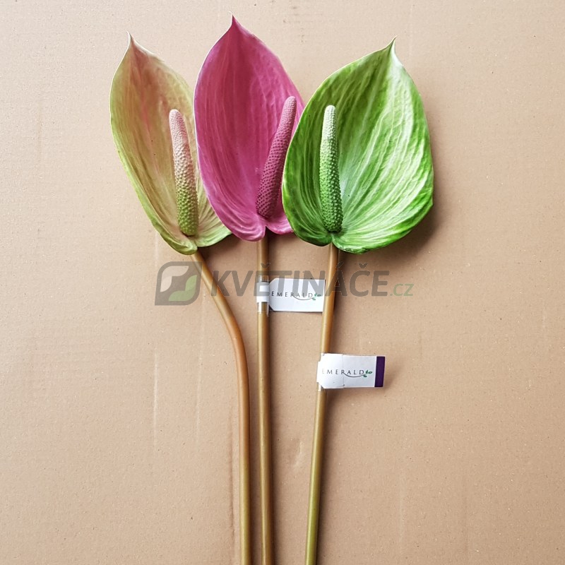 Umělý květ Anthurium růžově-zelené barvy s výškou 85cm vč. stonku. Vhodné jako dekorativní doplněk. Pokud nemáte čas ani chuť pěstovat, pak je určeno právě vám. Vysoká kvalita zpracování listů a květů.