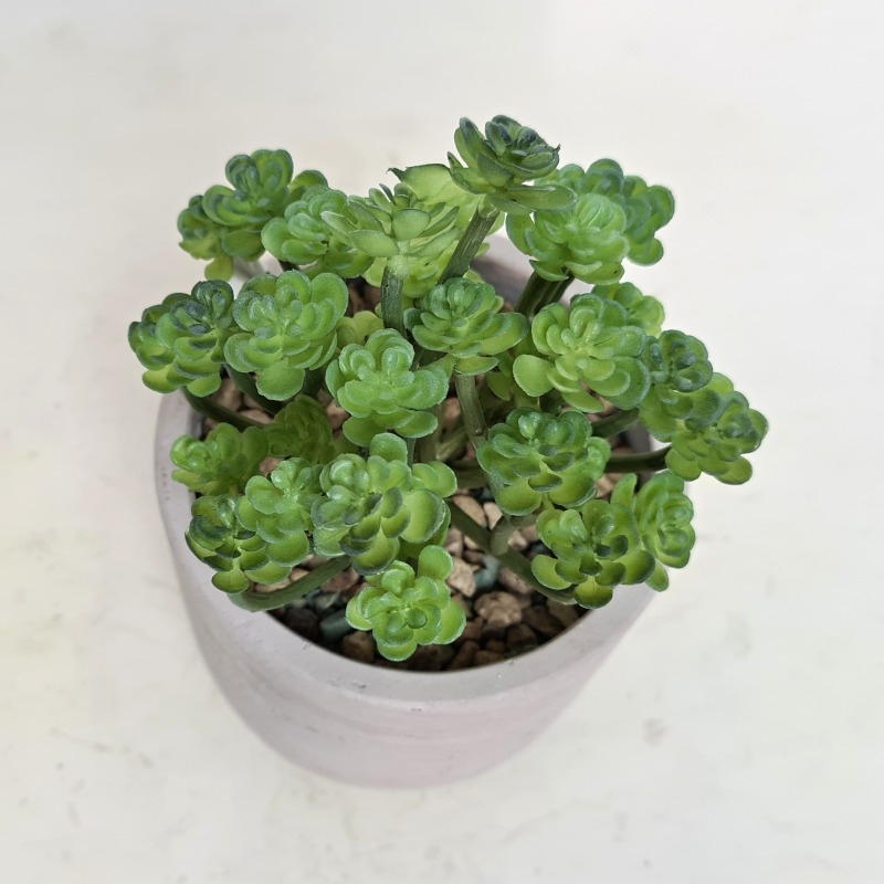 Umělé sukulent Sedum zelený s výškou 17 cm. Vhodné do např. malých truhlíků v tmavších místnostech. Květináč není součástí balení.