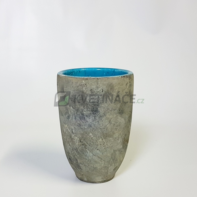 Stolní keramická váza Fien má matnou šedo tyrkysovou barvu a rozměry 15x23cm. Ručně vyrobené a odolné proti poškrábání. Použití v interiéru a letním období i v exteriéru. Nádoba je vodotěsná.
