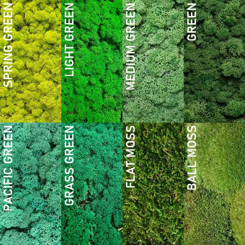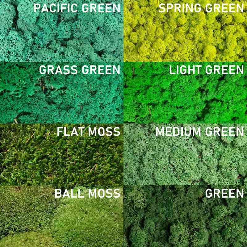 Vzorník všech zelených mechů, které máme v nabídce. Vhodné pokud si nejste jisti odstínem mechu. Každý je zabalený zvlášť pro jednoduchou identifikaci mechu včetně popisu barvy. Doporučujeme mech udržovat v relativní vlhkosti vzduchu okolo 45 - 65 %, aby se mech nevysušil a ponechal si svoji barvu a měkkost.