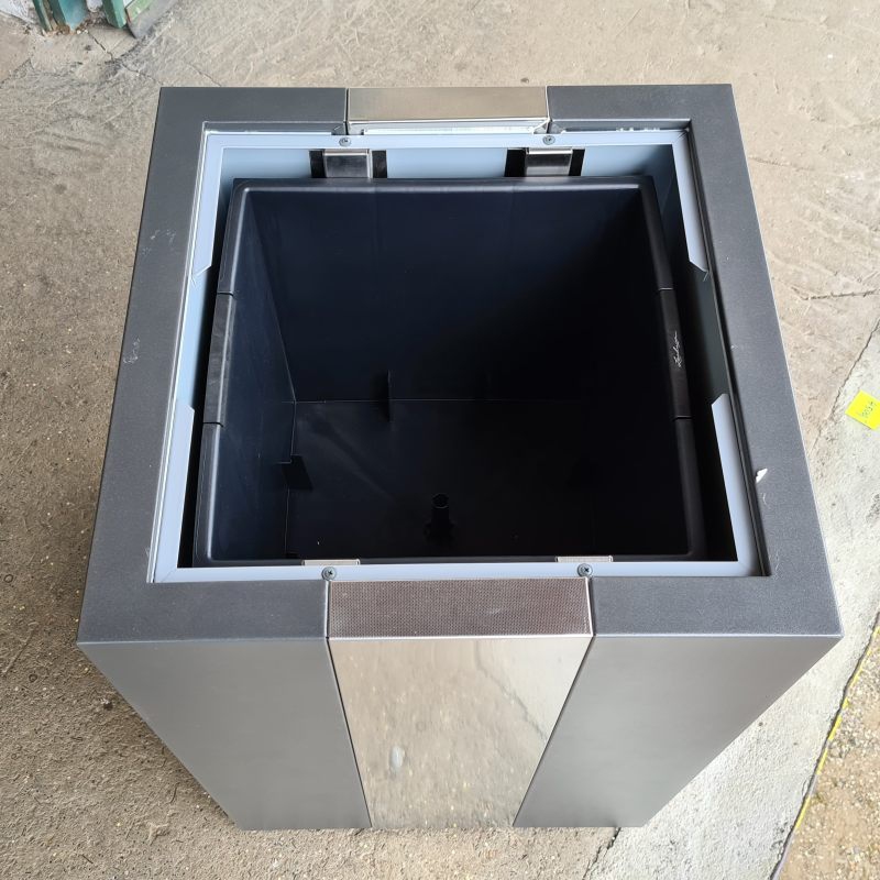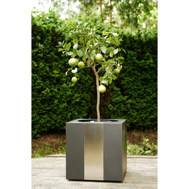Samozavlažovací květináč Wagner steel antracit 50 x 50 x 50 cm má metalickou antracitovou barvu. Vyrobený z vysoce kvalitní nerezavějící oceli o tloušťce 1,2 mm. Materiál umožňuje použití květináče v interiéru tak exteriéru. Stěny květináče se skládají z sendvičového panelu naplněného polyuretanovou pěnou, která chrání kořeny rostlin proti mrazu i vedru. Vnitřní tělo květináče je vyrobeno z ABS plastu. S květináčem Wagner se snadno manipuluje díky skrytým kolečkům s možnosti zajištění proti pohybu. Samozavlažovací systém Lechuza je součástí balení (Liner + Set systém). K dispozici je možnost zvolit barvu květináče z palety RAL na zakázku.