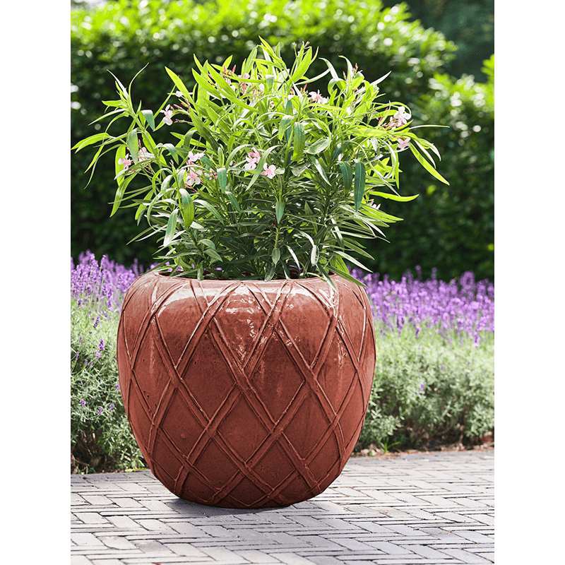 Venkovní květináč Wire Coppa Red 68 x 59 cm je vyrobený z cementu a kompozitních materiálů. Tím je docílena velice nízká váha a pevnost oproti keramice nebo betonu. Ruční úprava povrchu zaručuje originál každého kusu. Vhodné do exteriéru i při nízkých teplotách. Při zakoupení gumové vložky mohou být umístěny v interiéru. Vložka zaručí 100% nepropustnost vody a lze s v ní vytvořit samozavlažovací systém. Doporučujeme také zakoupit vodoznak, díky kterému budete mít přehled o stavu hladiny vody v květináči.