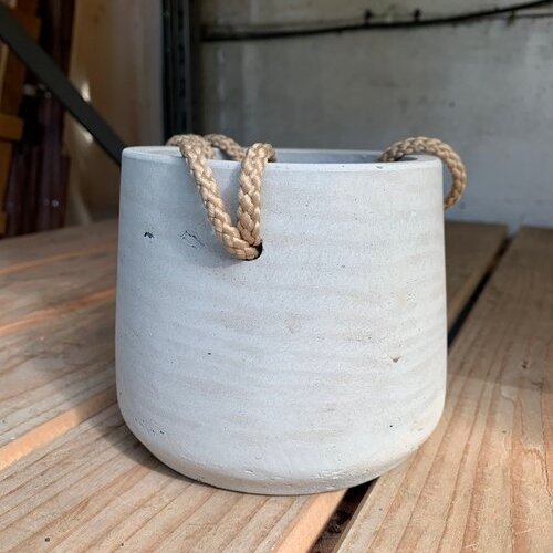 Závěsný květináč pottery charlie M šedý s rozměry 18 x 18 cm má světle šedou barvu. Je vyrobený z kompozitního materiálu, který dokonale imituje keramiku. Tří bodové zavěšení je na masívních provazech. Květináč je vodotěsný a je tedy primárně vhodný do interiéru. Při použití v deštivém exteriéru je nutné vyvrtat odtok vody. Délka zavěšení je cca: 50 cm až 55 cm. Součástí zavěšení je masivní kroužek.