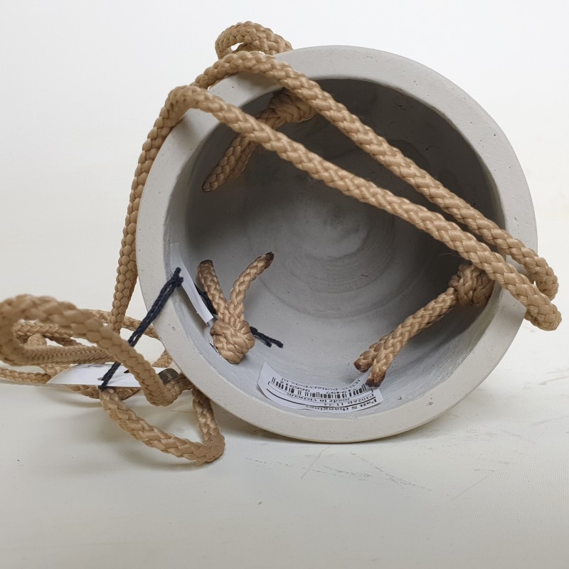 ávěsný květináč pottery Patt M šedý s rozměry 17 x 14 cm má světle šedou barvu. Je vyrobený z kompozitního materiálu, který dokonale imituje keramiku. Tří bodové zavěšení je na masívních provazech. Květináč není vodotěsný a je nutné použít gumovou vložku.